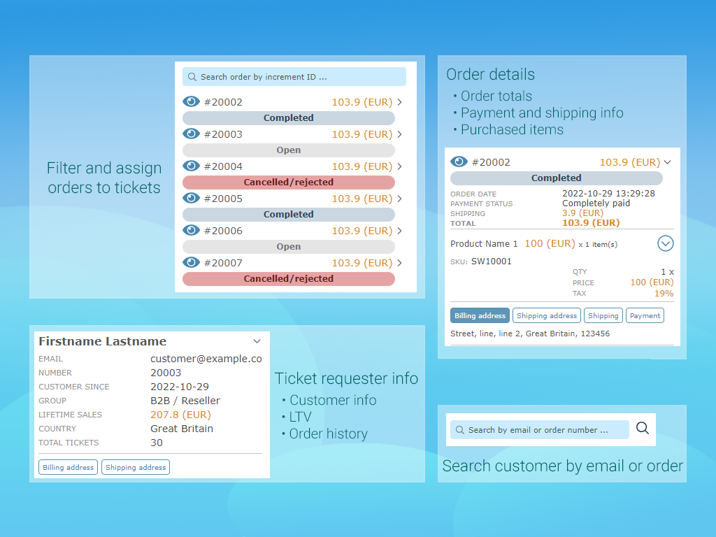1) Providing information about the customer and orders directly in the ticket page